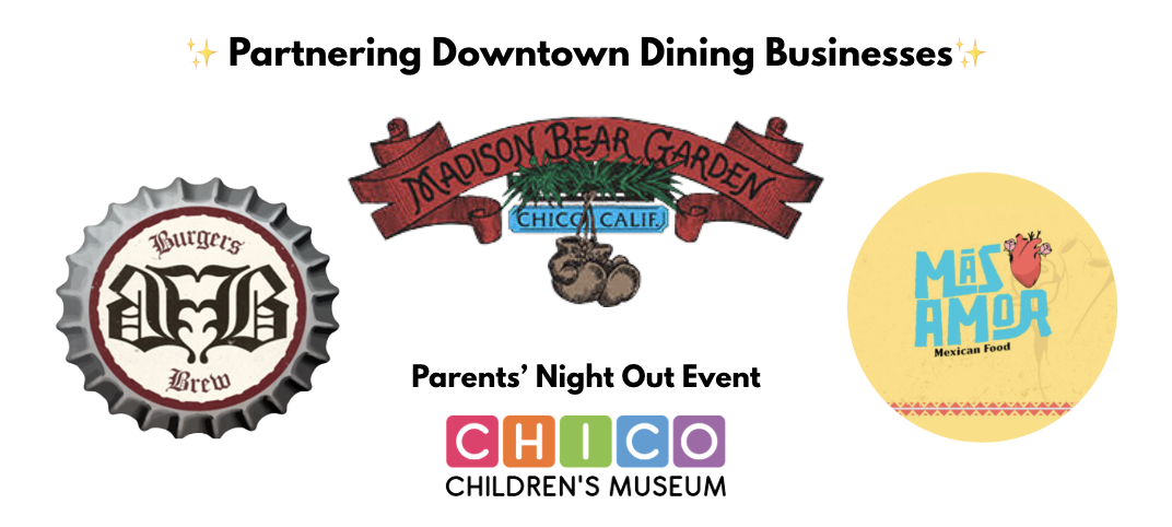 Potty-trained children can enjoy a fun-filled evening of games, activities, crafts, supervised playtime, and pizza, while you enjoy a relaxing night out in downtown Chico.